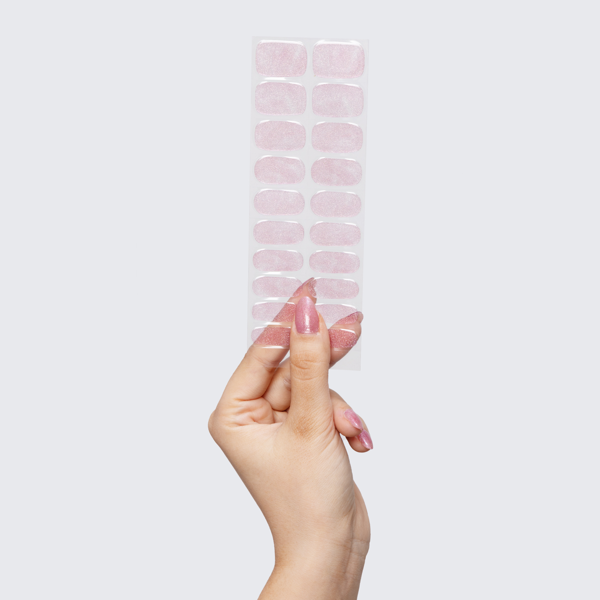 Our GLAM & GO gel nail wraps ensure that no matter how complex your chosen nail design, the application process remains incredibly simple. Our GLAM & GO gel nail wraps require no glue, base coat, or top coat—just peel them off the packaging, apply them to your nail, trim to size, cure twice, and voilà!